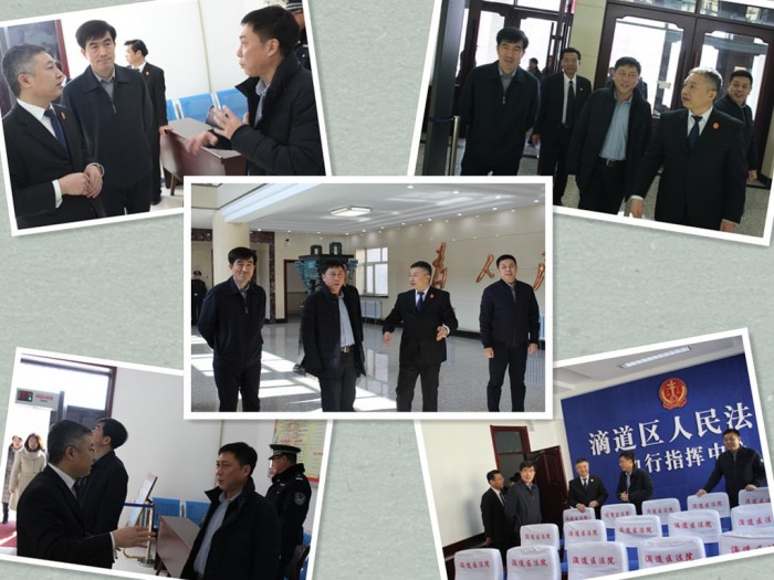 3月9日,鸡西市中级人民法院党组书记、院长王双近,党组成员、副院长王昭权,政治部主任高国滨,研究室主任管霜梅,宣传科科长马文欣,审管办负责人高亚萍,办公室负责人苑俊辉一行7人到滴道法院实地调研,滴道法院党组书记、院长赵鸿江及全体党组成员参加了座谈。