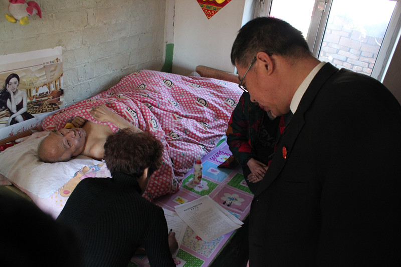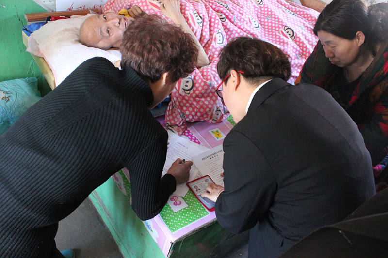 近日,为了方便当事人诉讼,滴道法院立案庭干警为瘫痪在床的陈某某提供上门服务。据了解,原告的父母于2005年去世,生有五子女,其中陈桂某(其子女3人)去世。已故父亲生前在滴道矿胜利委有平房一户,对于已故父亲名下该房屋的继承事宜,经原告与六被告协商未成,故诉至法院。