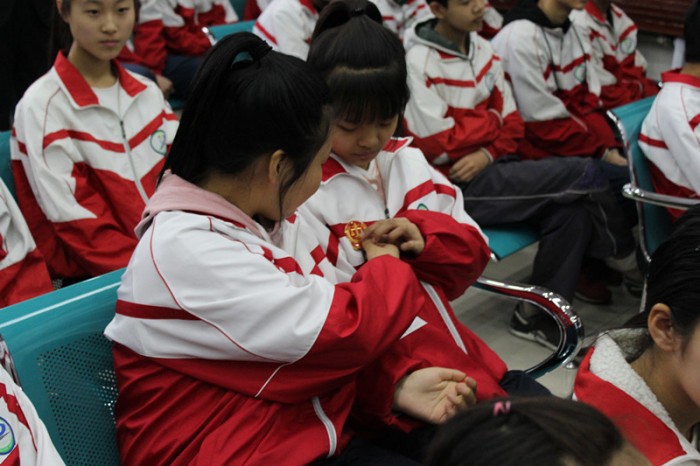随后由同学们自愿报名,挑选了9名小记者,分别担任审判长、审判员、书记员和被告等,从“书记员”宣布法庭纪律开始,到全体起立“审判长”宣读判决书结束,一步不漏地模拟了一起殴打他人致人轻伤的庭审。庭审中,法官助理赵茂盛适时指出何时要敲法槌,何时由“值庭法警”呈递证据,怎样质证,怎样辩论,“审判长”如何做法庭调解工作,并鼓励同学们积极参与,庭审气氛热烈又秩序井然。同学们神色庄重,认真严谨。没有担任角色、只在一边旁听的同学们也都聚精会神、认真聆听。