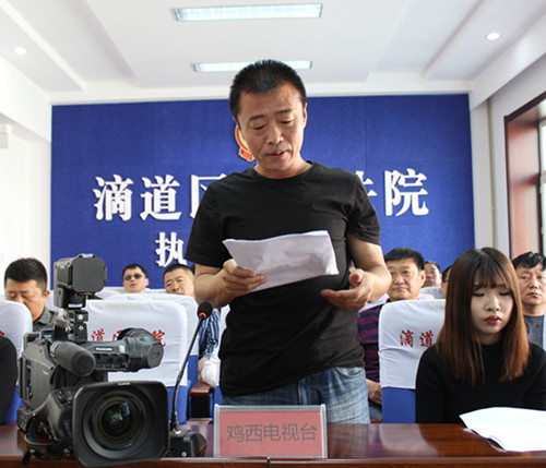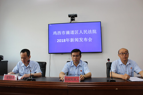 6月12日上午,滴道法院召开2018年执行工作新闻发布会,向社会各界通报了开展“元月攻坚”、“雷霆行动”、“雨夜猎赖”等集中打击活动的基本情况。新闻发布会由政工科长江吉涛主持,副院长马道明发布了2018年以来特别是“雷霆行动”取得的阶段性成果,执行局负责人郝继武介绍了三起典型案件。