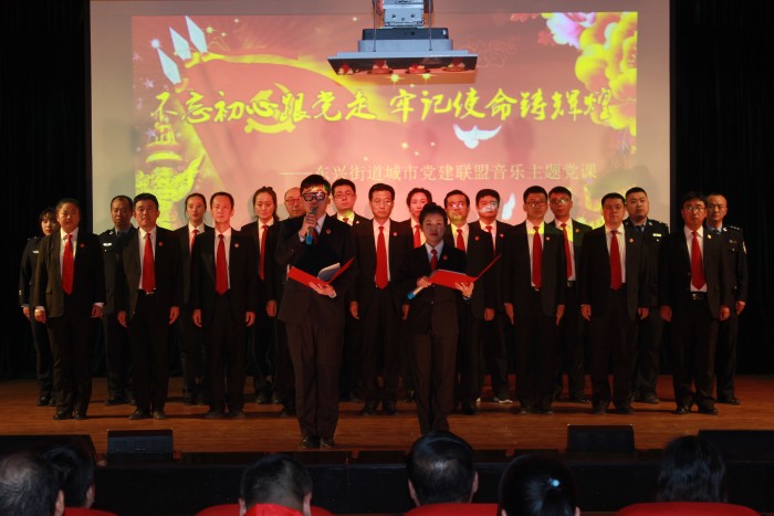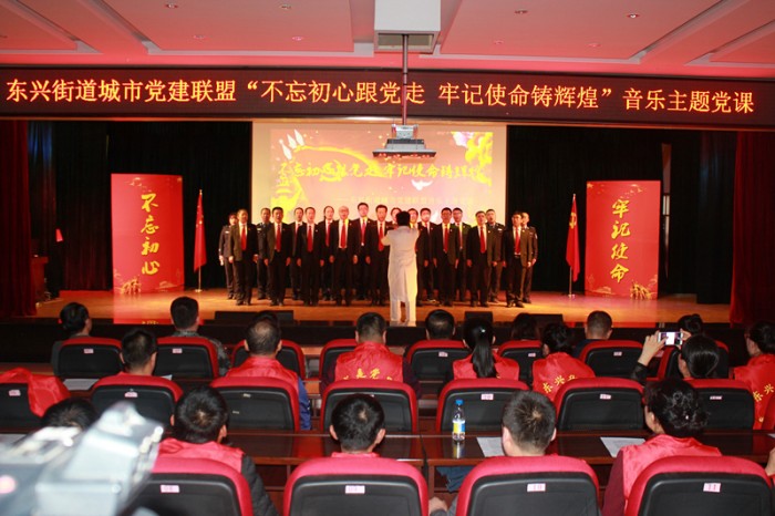 为进一步增强党建联盟在城市党建中的重要作用,促进党建联盟成员单位之间的互动交流,10月19日下午,滴道法院协助东兴社区在区政府五楼报告厅举办了一堂别开生面的“不忘初心跟党走 牢记使命铸辉煌”音乐主题党课。滴道法院院党组全员参加了小合唱《歌唱祖国》和《法官之歌》。