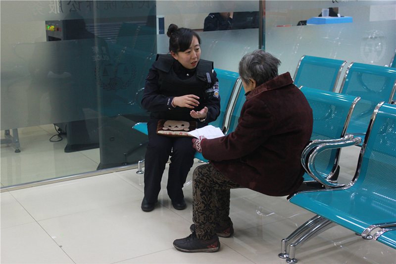大娘情绪激动,法警耐心为大娘引导诉讼服务,安抚情绪,这是法院最常见的场景,这也是法院的本职工作。