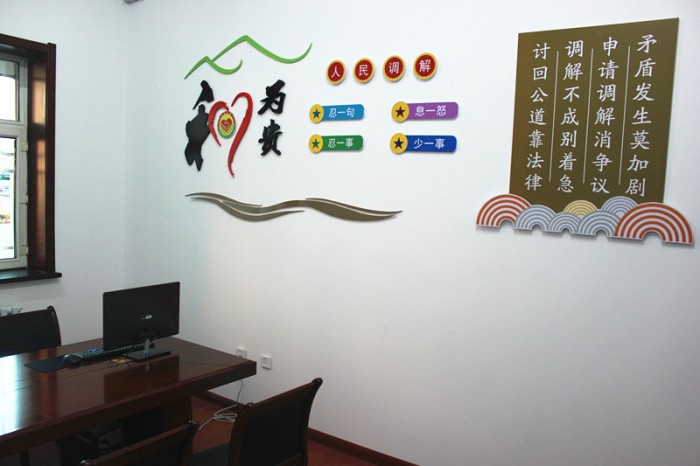 12月10日,小编在滴道区人民法院见到新鲜的一幕,经过改造后的诉前调解室、远程接待室、律师调解室、诉调对接室、冷静室,采用人性化的设计,注入了礼仪之邦的国学精华,使得本来气氛紧张而对立的法庭审判变得气氛缓和、温馨,凸显浓厚的和谐氛围。