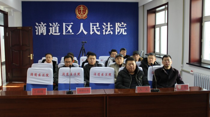 为优化营商环境,促进民营企业健康发展,12月11日上午,滴道法院召开新闻发布会,通报了维护民营企业合法权益工作情况。新闻发布会由副院长李敏主持,民二庭庭长董洪渠介绍了2018年以来滴道法院审理涉民营企业案件情况,审管办负责人张立军参加了新闻发布会。部分区人大代表、政协委员、民营企业家代表、区工信局同志参加了新闻发布会。