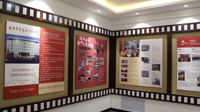 整个文化室用直观的语言文字和图片展示了滴道法院的党建工作内容,在空间上延伸了红色精神的教育阵地,不仅能够加深广大干警对党的认同感和使命感,也能方便当事人了解法院工作,进一步提升了法院形象。