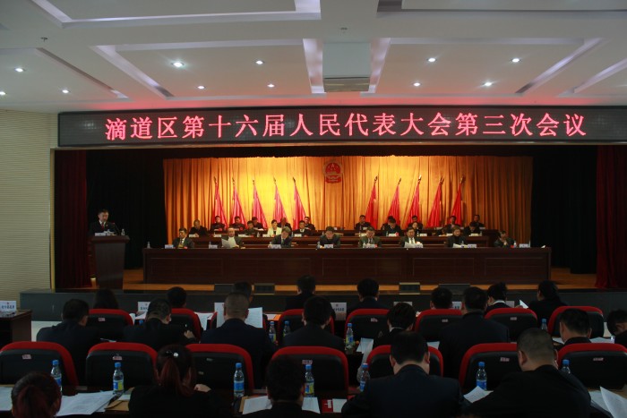赵鸿江院长从三个方面报告了滴道区法院过去一年的主要工作:一是始终坚持以民为本,狠抓职能发挥,服务大局成效明显;二是始终坚持以案为本,狠抓执法办案,审判质效稳步提升;三是始终坚持以人为本,狠抓自身建设,司法能力不断增强。
