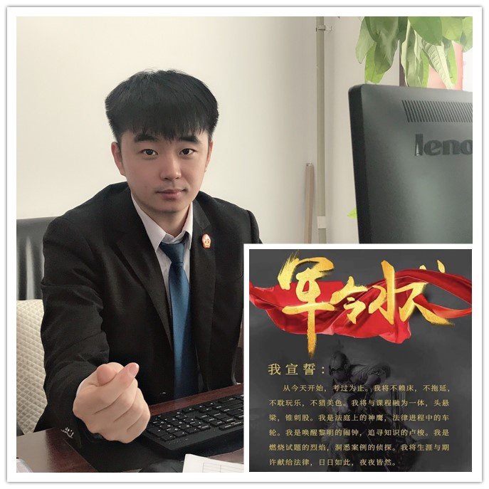 每天他都是院里走的最晚的一个,他坚持下班后在办公室看书,用挤出的时间来学习思考,春节刚过,他就给自己下了一个“军令状”,让我们和他一起宣誓,一起做一个努力的人吧,“今天起,我将不赖床,不拖延,不耽玩乐……我是唤醒黎明的闹钟,追求知识的卢梭……我将生涯与期许献给法律,日日如此,夜夜皆然。”