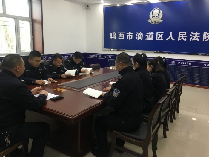 2月13日中午,滴道法院司法警察大队在大队长张海彬的带领下,利用午休时间开展思想政治学习活动。
