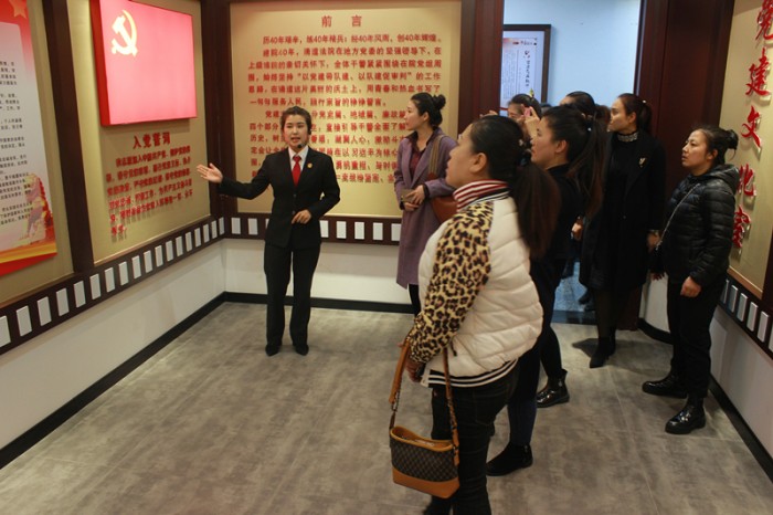 受邀妇联代表在法院干警的引领下,参观了司法警察大队、执行指挥中心、科技法庭、党建文化室等,零距离接触法院司法工作的风貌,近距离领略法官工作的风采。参观过程中,干警向妇联代表详细介绍了法院司法建设、文化建设等情况,尤其重点介绍了法院妇女儿童维权工作的开展情况,并就妇联干部代表关心关注的维护妇女儿童权益问题与参访人员进行了交流互动,详细解答了妇联干部代表的提问。
