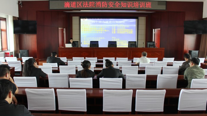 为有效防范化解重大安全风险,贯彻落实消防安全责任制度,普及消防应急知识,提高全院干警消防安全意识和防御火灾能力,5月30日,滴道区法院邀请安全防火宣传中心教官来法院开展消防安全知识讲座。