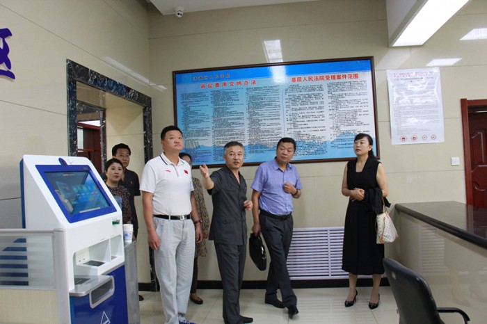 在院长赵鸿江的引导下,先后参观了诉讼服务中心、执行指挥中心、审判法庭、党建活动室等区域,并对滴道法院开展各项为民服务情况进行详细介绍。吕建辉一边参观,一边感慨滴道法院的变化,无论是立案、审判,还是执行,都充分展现了司法为民的情怀,让他们深切地感受到法治的温度。