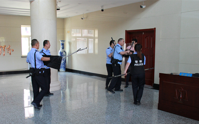 此次演练是关于当事人强行闯入法院进行突发事件的情况设想开展,通过实地演练、处置实施、演练讲评,使全体法警熟悉警务工作中应对突发事件的步骤方法,提高执法水平和处突能力。