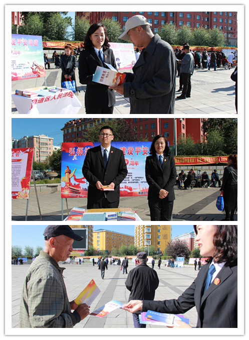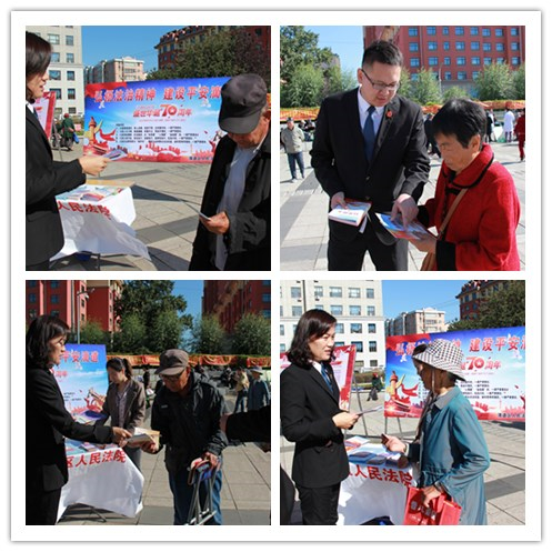 为迎接建国70周年,提高群众的法律意识。9月20日上午,滴道区人民法院组织干警在滴道区花园广场开展了“弘扬法治精神,建设平安滴道”宣传活动。