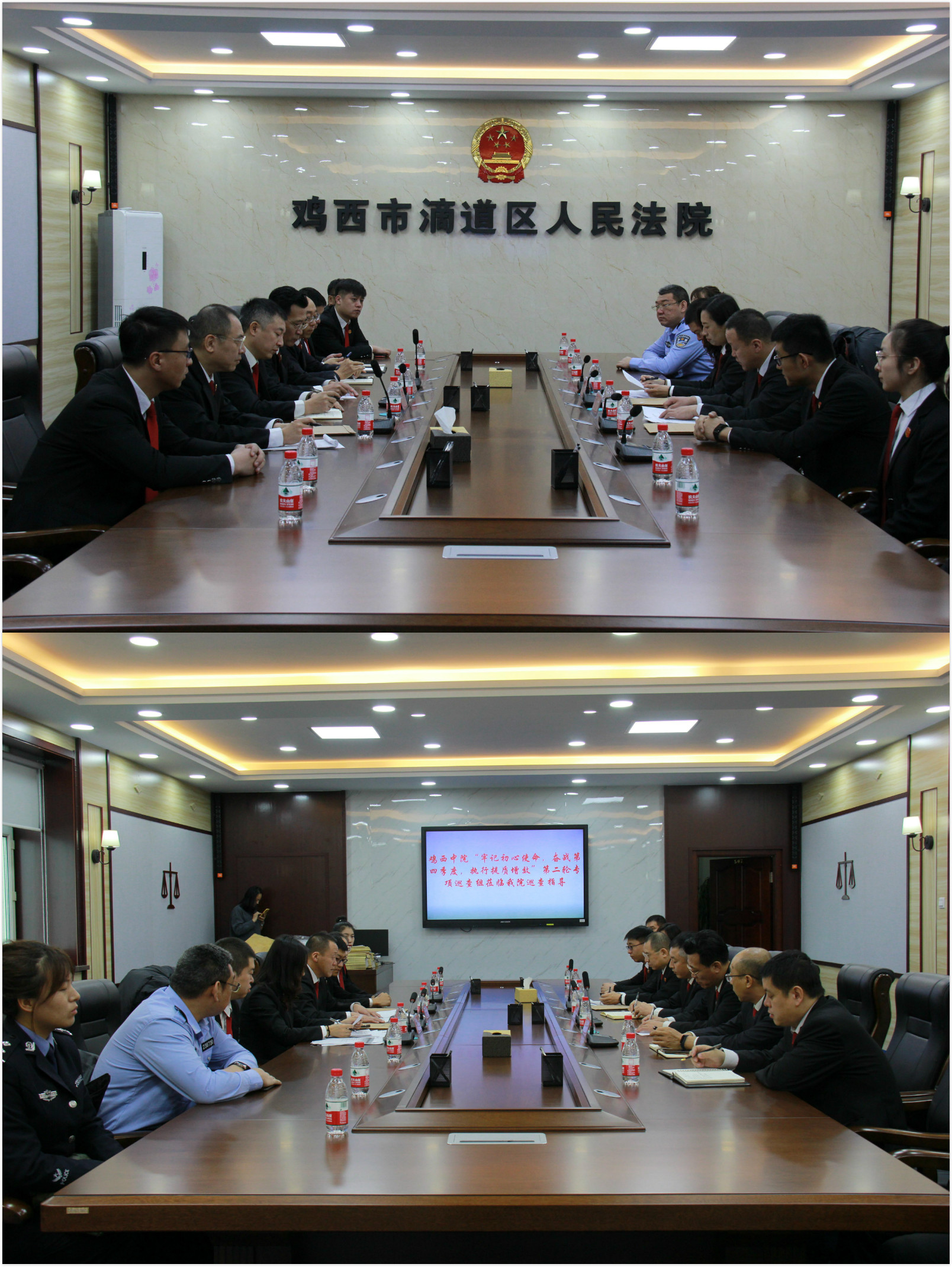 11月13日上午,鸡西中院牢记初心使命,奋战第四季度,执行提质增效,第二轮执行工作专项巡查组一行十人,在市中院执行局王刚副局长的带领下,深入滴道法院对执行工作进行专项巡查。滴道法院党组书记、院长赵鸿江、党组成员、常务副院长张君起、执行局局长郝继武及执行局全体干警参加了会议。