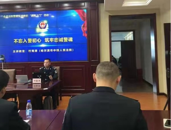 一、由哈尔滨中院付海涛授课《不忘从警初心、筑牢忠诚警魂》。