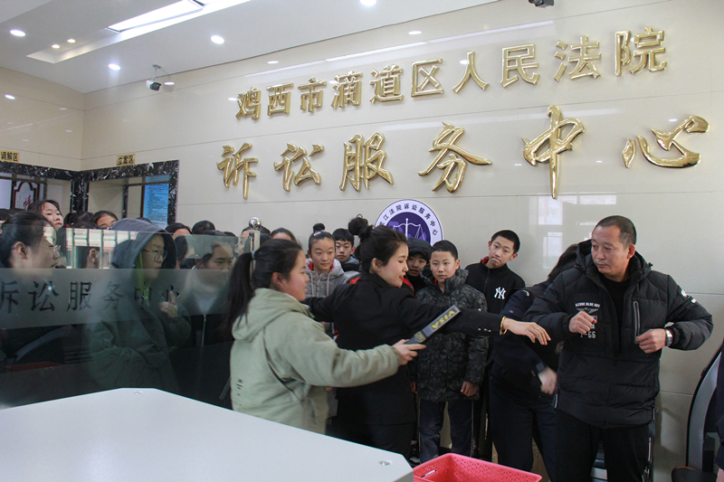 小编嘚吧嘚:随着社会法治建设的不断深入,人们的法治意识也随之提升,越来越多的人希望走进法院,增进对法院的了解,零距离感受法院文化和法治威严。针对日益增多的参观群众,滴道法院转变原有传统的接待模式,根据每一批参观者的需求,定制不同的活动路线,有针对性地发放宣传资料、安排庭审案件。例如在寒暑假期间,邀请学校师生来院参观。这次滴道学校七(二)班“少年学法行”就是专为他们量身定制的一次法治之旅。