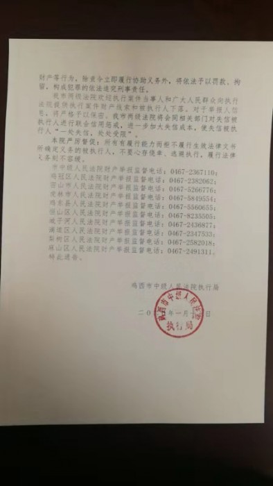 鸡冠区人民法院财产举报监督电话:0467-2382062;