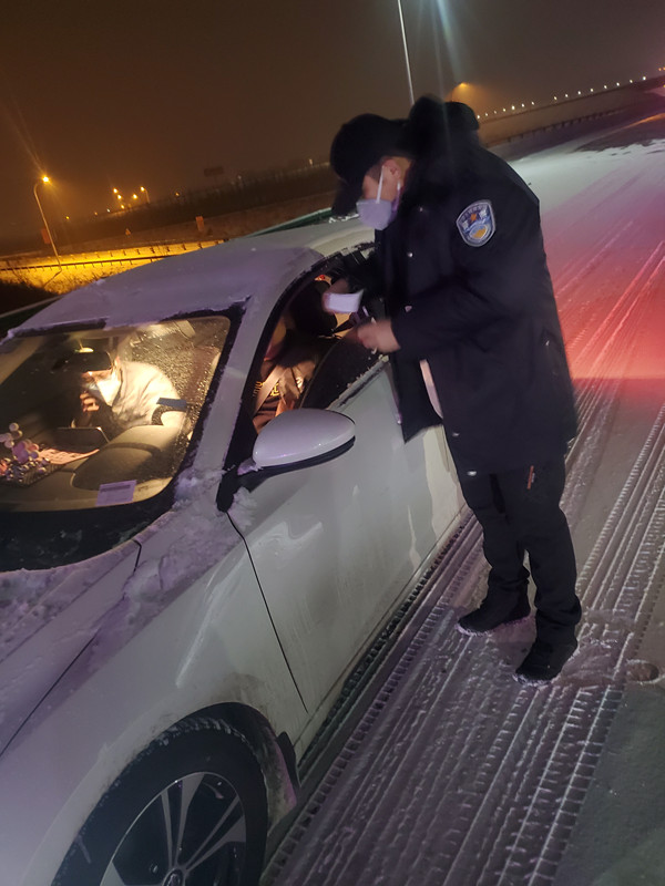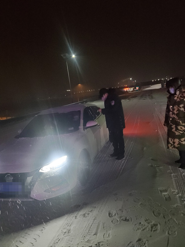 在通往滴道大桥防“疫”检查站,有着急过检的医生、护士,有清洁马路的环卫工人,有保障民生“菜篮子”的进货商,还有时刻待命的警察……