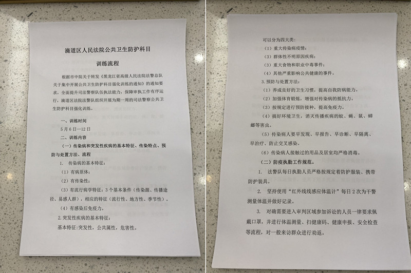 为积极响应疫情防控和安保工作的新形势要求,确保警务工作安全,5月6日上午,滴道法院法警队召开公共卫生防护训练会议,由队长张海彬主持,警队干警参加会议。