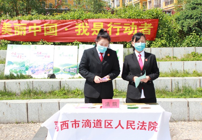 6月5日是世界环境日,今年环境日主题是:“美丽中国 我是行动者”,为积极践行法律宣传主题,增强群众环境保护法律意识,滴道法院开展了环境保护法律宣传活动。