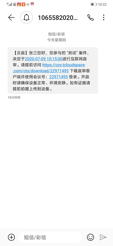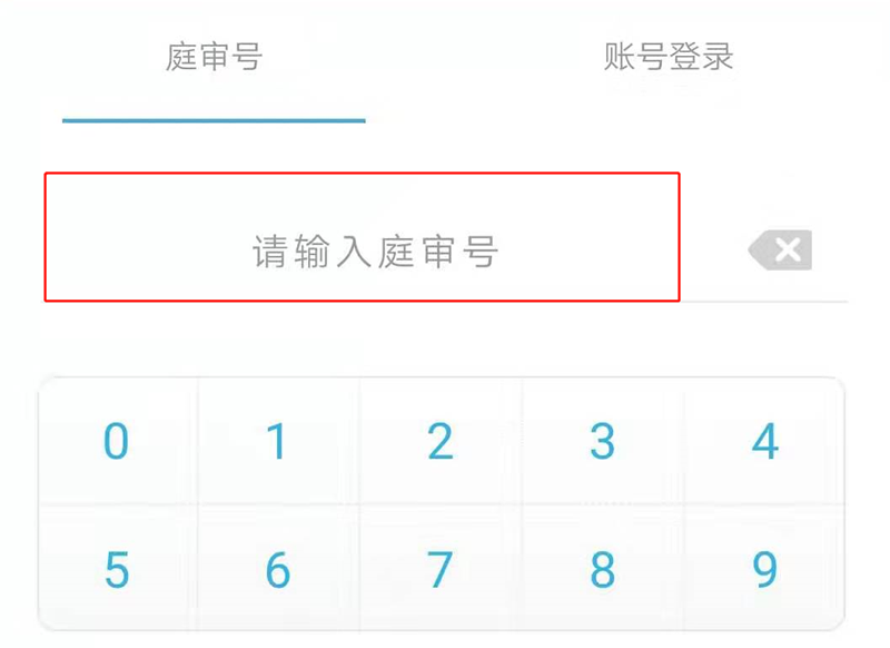 “请输入庭审号”处输入短信通知中的8位数会议号,点击进入庭审按钮。