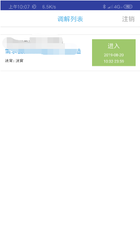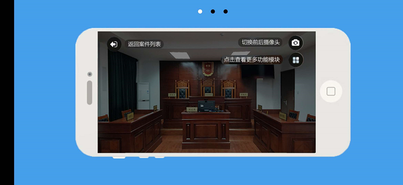 3、登录后显示开庭列表,当天开庭在未闭庭的情况下,可随时进入。开庭分为两个状态:正在进行、未开始;点击“正在进行”、“未开始”的开庭,可直接进入庭审页面。