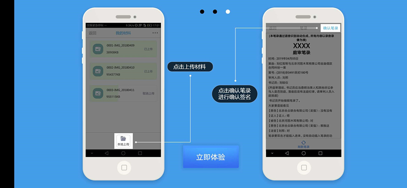诉讼参与人可以通过APP上传证据(允许上传的证据类型同PC端),可以查看原告/被告上传的证据内容。