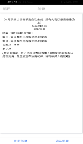 庭审过程中,可以点击“刷新”按钮,实时查看庭审笔录。