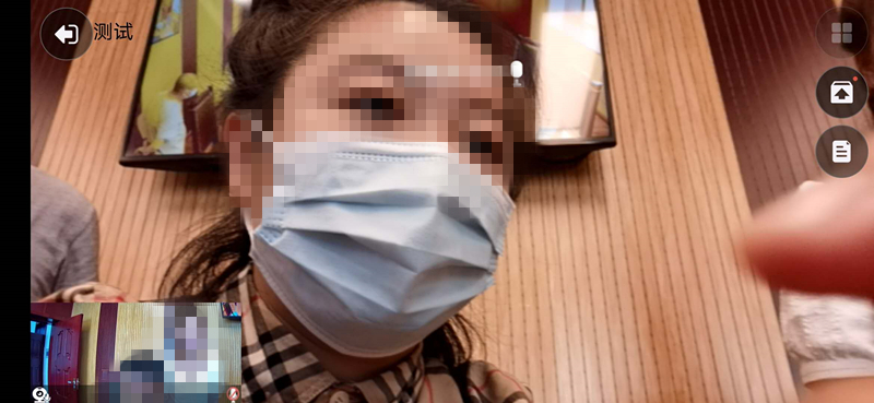 显示视频画面的人员图像及角色+名字,右侧按钮为:①切换前/后置摄像头;②更多功能按钮。