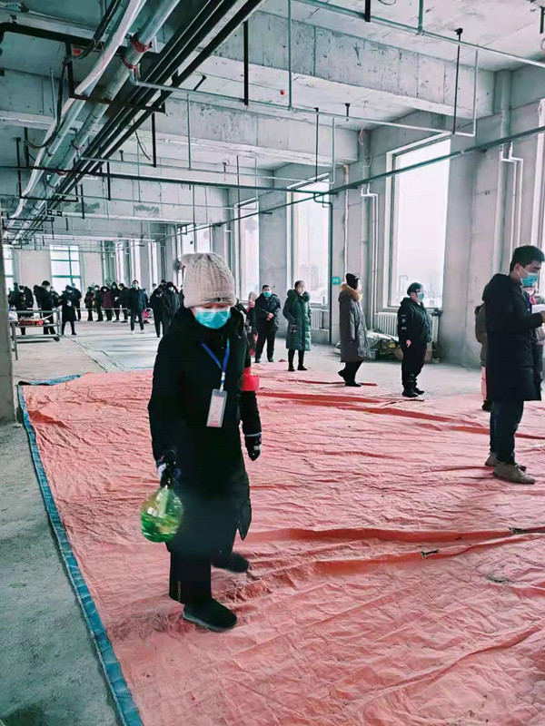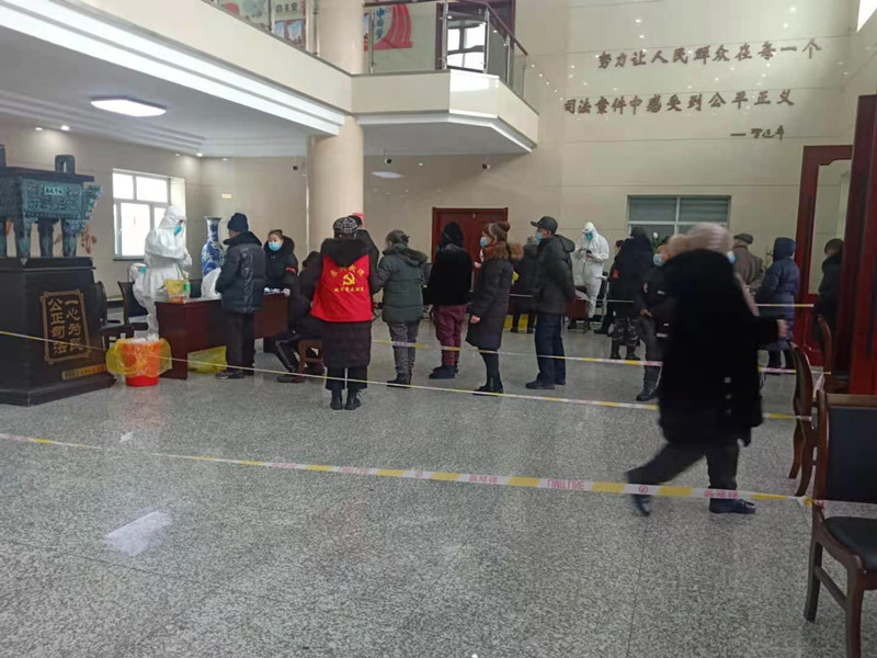 在滴道法院演练现场依次设置登记区、等候区、采样区、采集辅助区、缓冲区、临时隔离区、医废暂存处等多个区域。家住滴道区何娟、王莹等女干警虽未被抽调到服务小组,也自愿到院里配合引导群众。