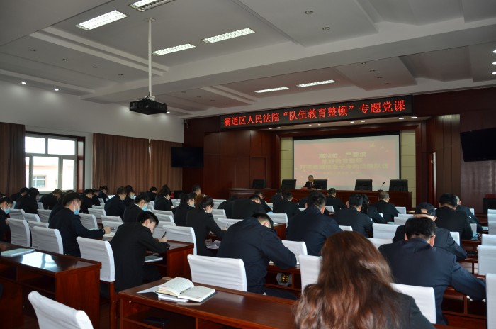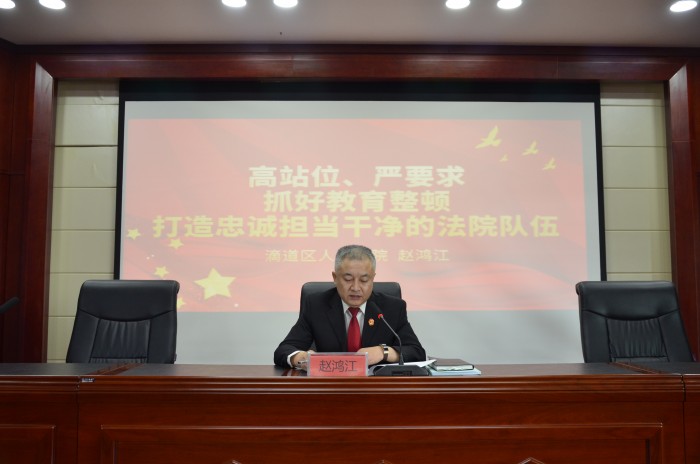 为贯彻落实习中央、省、市、区委对政法工作的指示精神,3月11日下午,滴道法院党组书记、院长赵鸿江发挥领导干部“以讲带学”作用,为全院干警做题为“高站位、严要求抓好教育整顿,打造忠诚担当干净的法院队伍”的党课讲座,带动法院队伍提高政治站位,开展好教育整顿工作。