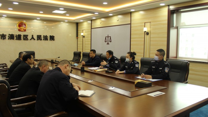 4月8日,鸡西市中院党组成员、副院长李德亮、市中院法警支队支队长闫旭等一行5人莅临滴道法院,对滴道法院“六专四室”建设情况及法庭安保工作进行了检查,滴道法院党组书记、院长赵鸿江、副院长马道明、法警大队大队长张海彬等陪同检查。