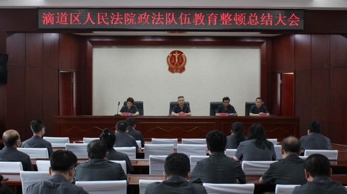 6月30日,滴道区人民法院召开队伍教育整顿总结大会。会议由党组成员、副院长马道明主持,党组成员、副院长李敏通报了队伍教育整顿工作情况,党组书记、院长赵鸿江进行总结讲话。全体干警参加了会议。