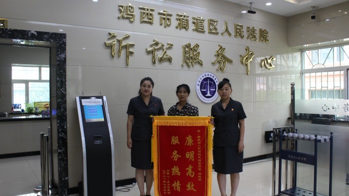 7月6日,当事人王某将一面绣着“廉明高效 服务热情”的锦旗送到滴道区人民法院张洪霞法官的手中,对张洪霞法官高效调解、秉持公正表示感谢。