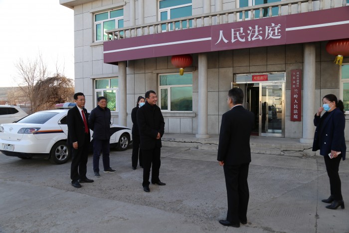 调研组一行在现场实地调研兰岭法庭的基础情况以及法庭品牌建设情况,刘景峰指出要加强法庭基础建设,多方面改进完善功能;要加强法庭专业化程度,主动询问群众需求,深化便民服务理念;要建立多个联络点,以点带面,建立沟通顺畅的长效机制。