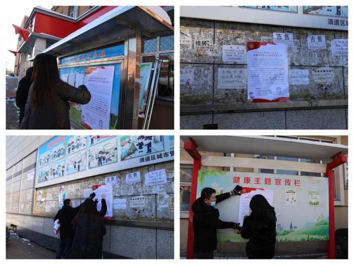 滴道法院干警分组深入社区、村屯、学校、商场、活动广场等地张贴诉讼参与人满意度评价宣传海报,向辖区居民介绍“诉讼参与人满意度评价系统”使用流程,提高群众的知晓率,扩大宣传的覆盖面,同时在诉讼服务中心、审判法庭、派出法庭等地张贴宣传海报,提高群众对诉讼服务满意度评价工作的关注度,让诉讼参与人更好地评价监督法院工作。