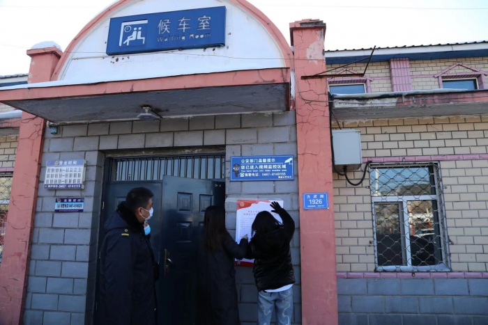 干警于火车站张贴诉讼参与人满意度评价宣传海报