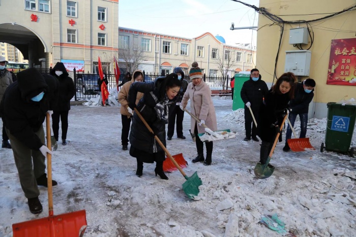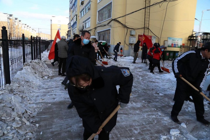 第四季度滴道区人民法院为党建联盟“轮值主席”,11月26日,滴道法院党支部联合光华社区、市公安局、组织部、教育局等成员单位开展主题党日活动,到光华社区金刚一、二号楼助力清冰雪工作。