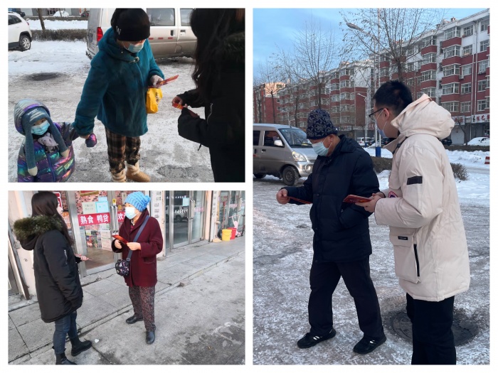滴道法院干警顶着风雪走上街头,通过向过往行人发放法律宣传单、提供法律咨询服务等方式,向群众讲解法律知识,耐心回答群众提出的问题,引导广大群众自觉学法、守法、用法,让群众在寒冬感受到司法的浓浓温暖。