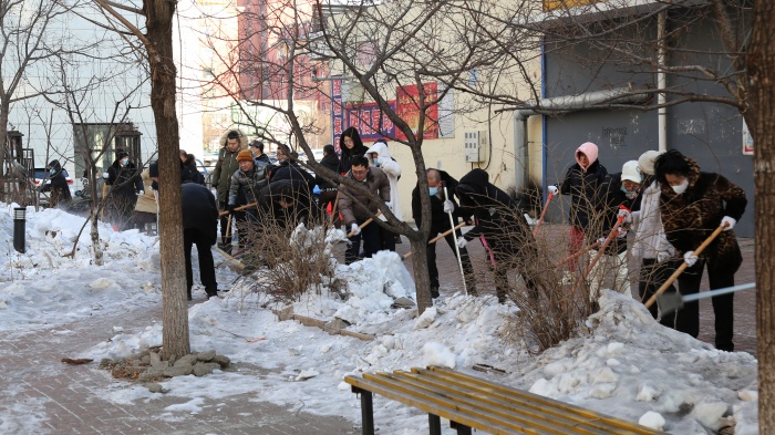 全院干警积极踊跃,对小区以及街道上的积雪进行清理,奋力挥舞着手中的扫雪工具,对已被碾压实的雪块砸碎并清扫干净,为小区居民开辟一条安全的道路。经过2个小时的奋战,清雪任务圆满完成。作为包保单位将及时关注,并配合社区作好积雪清理,减少人们出行的安全隐患,确保百姓出行方便,将群众的事放在心上、办到实处。