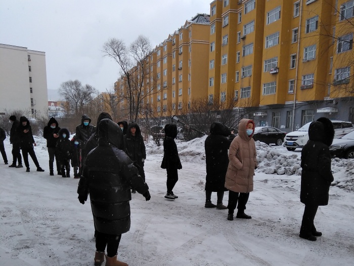 早七点,室外温度达零下二十多度,干警们到达各集合点协助组织检测工作。布置检测点,维持各检测点的现场秩序,采集被检测人员信息,回收检测样本,场所消杀,垃圾回收等。按照方便群众、减少聚集的原则,组织居民分批次分时间段检测,确保检测井然有序。