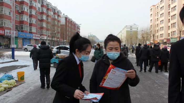 干警们到滴道区市场向来往群众发放防疫用品和普法资料,宣传法律知识和防疫知识,真诚倾听、接受群众的法律咨询,对于群众提出的各方面问题,结合相关案例以浅显易懂的语言耐心细致的为来询群众进行了讲解,引导社区居民如何依法处理生活中遇到的各种矛盾纠纷,收到群众的广泛好评。