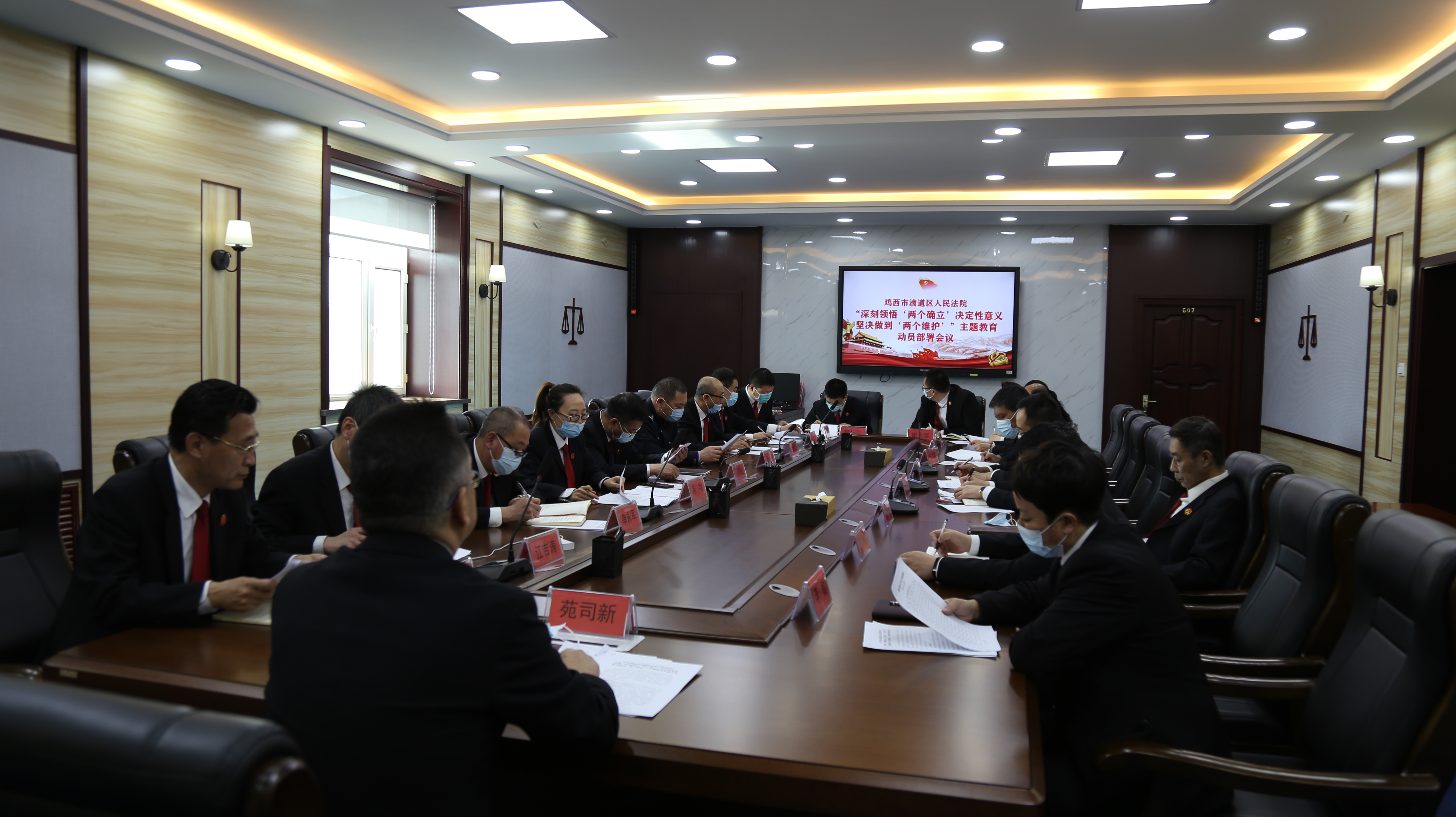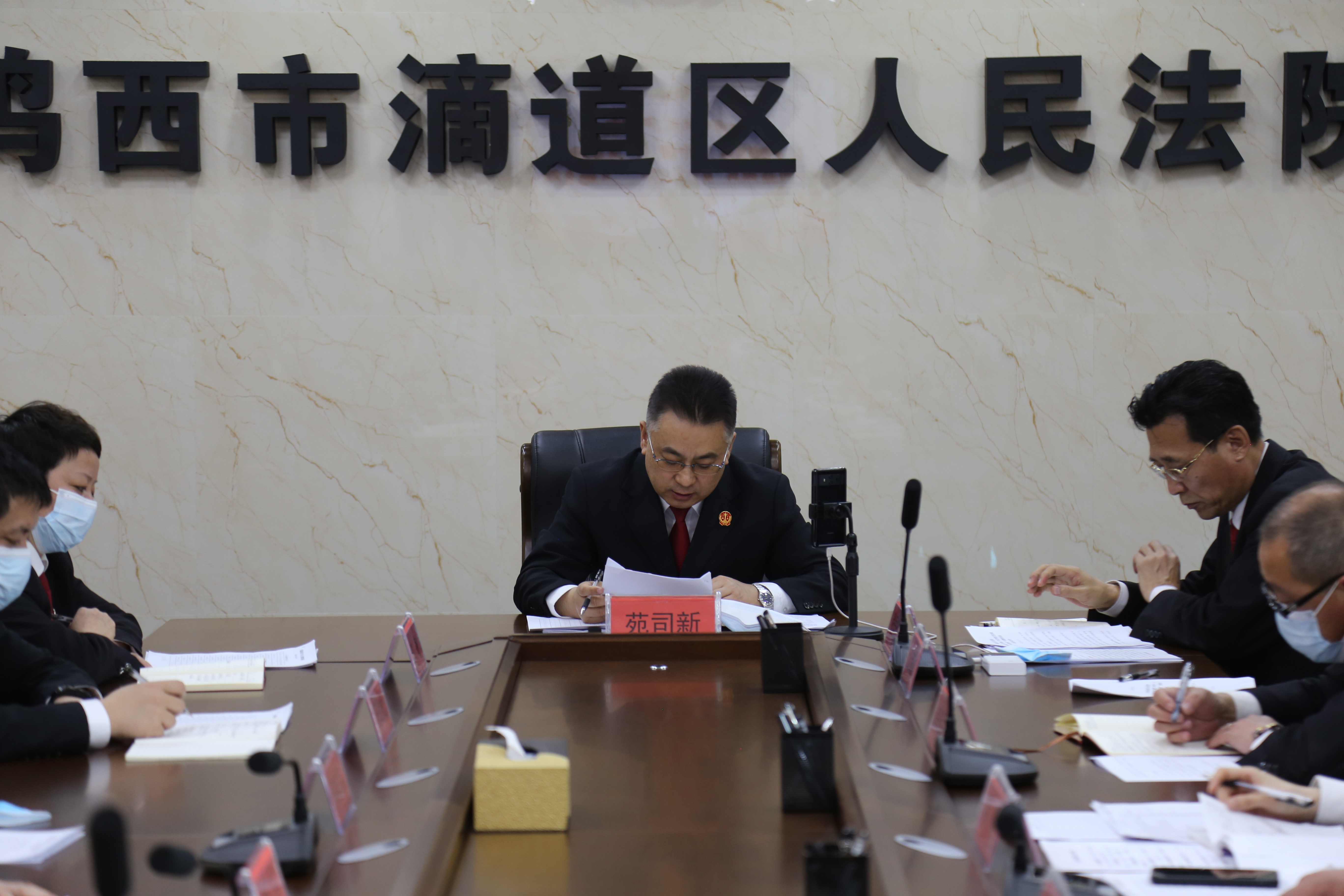 4月7日,滴道区人民法院召开“坚定拥护‘两个确立’决定性意义坚决做到‘两个维护’”主题教育动员部署会议。党组书记、院长苑司新,副院长李敏、王劲松,政治部主任江吉涛及各部门负责人、员额法官、法官助理参加本次会议。按照防控要求,其他干警通过钉钉远程视频参会。会议由党组副书记、常务副院长张君起主持。