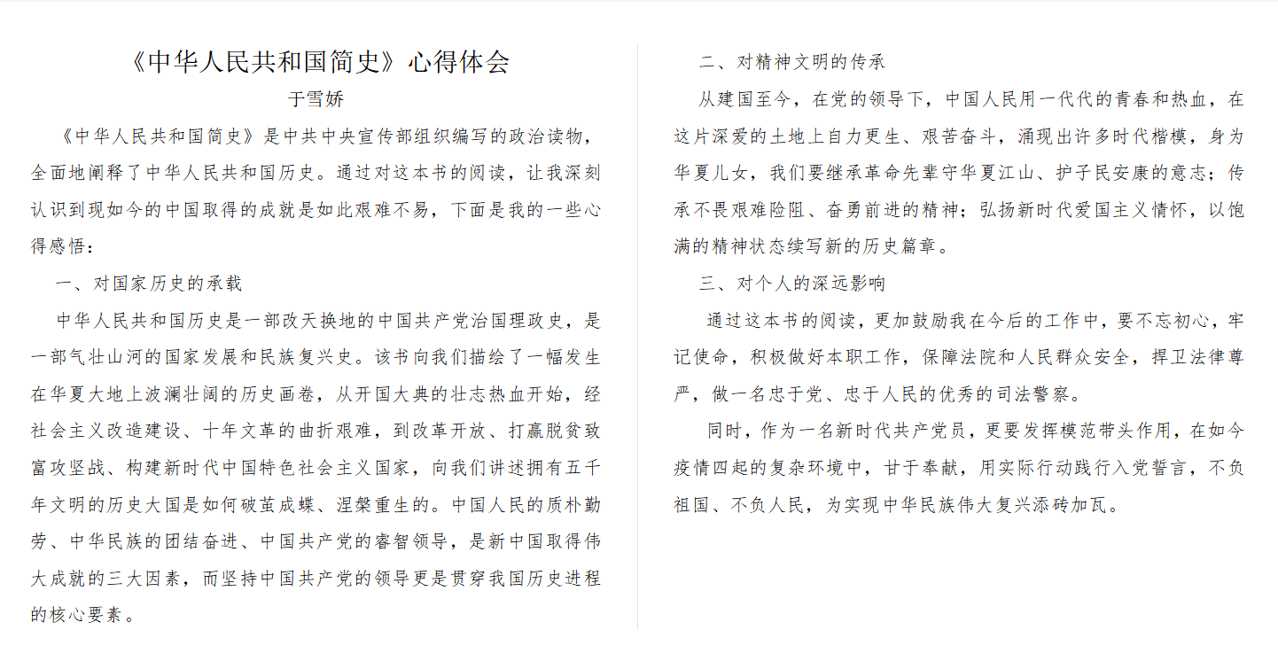 今天,由滴道法院综合办公室(司法警察大队)法警于雪娇、执行局迟原泽带来他的所学所悟: