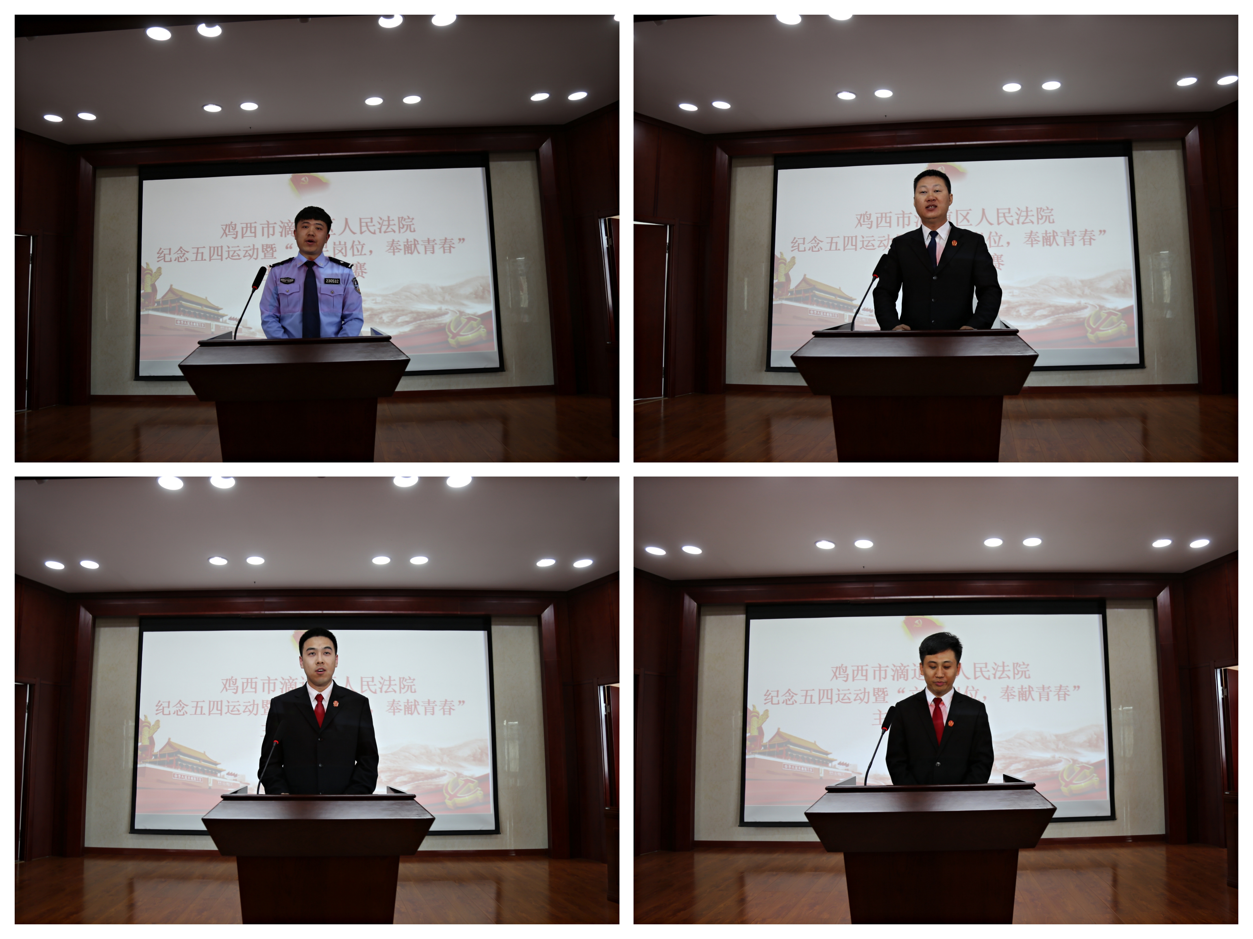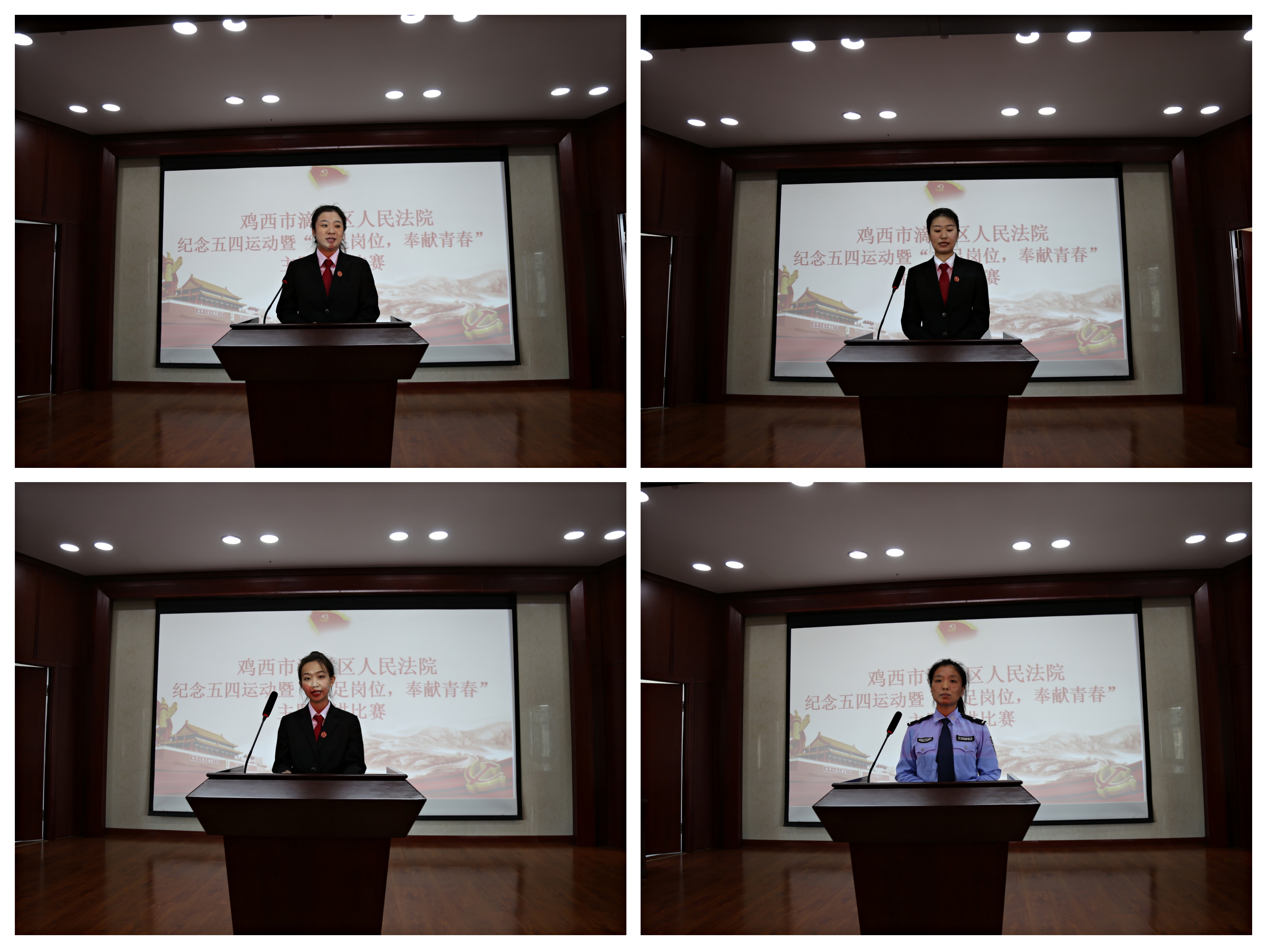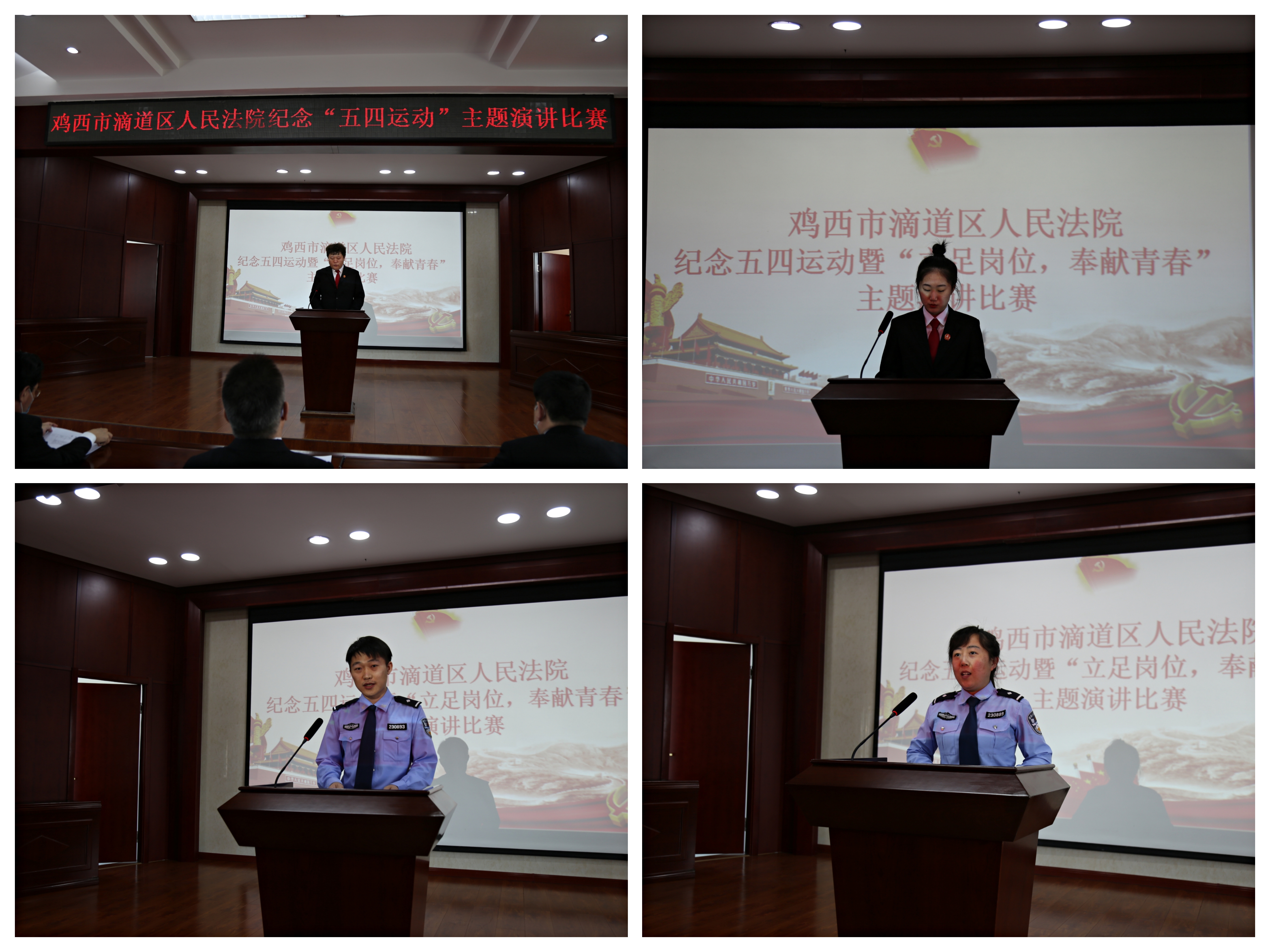 青春心向党,奋进新征程!为进一步弘扬五四精神,培养青年干警爱岗敬业、勇于创新的为民情怀,滴道法院举办纪念五四运动暨“立足岗位,奉献青春”主题演讲比赛,用热血青春宣讲对祖国的热爱,对司法事业无限追求和孜孜不倦的奉献,用公平正义书写无悔的青春,让“五四”精神继续生生不息!
