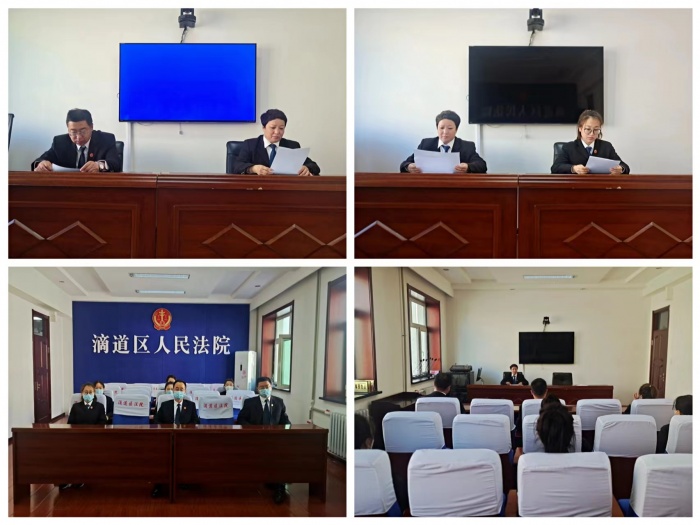 为深入贯彻落实机关“能力作风建设年”活动,进一步推进学习型法院创建活动,近日,滴道法院立案庭(诉讼服务中心)全体干警在主管院长李敏的带领下,深入学习《习近平法治思想学习纲要》、《习近平新时代中国特色社会主义思想学习纲要》,坚持和发展新时代“枫桥经验”,创新服务理念,全面推进一站式多元解纷和诉讼服务体系建设。
