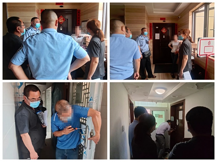 在惠阳法院执行局的协助下,干警联系了开锁公司,与两位被执行人配偶及房产物业工作人员共同来到现场,对3套房屋进行破锁、换锁,对房屋内设施进行备案拍照、备案录像并将新钥匙进行封存。