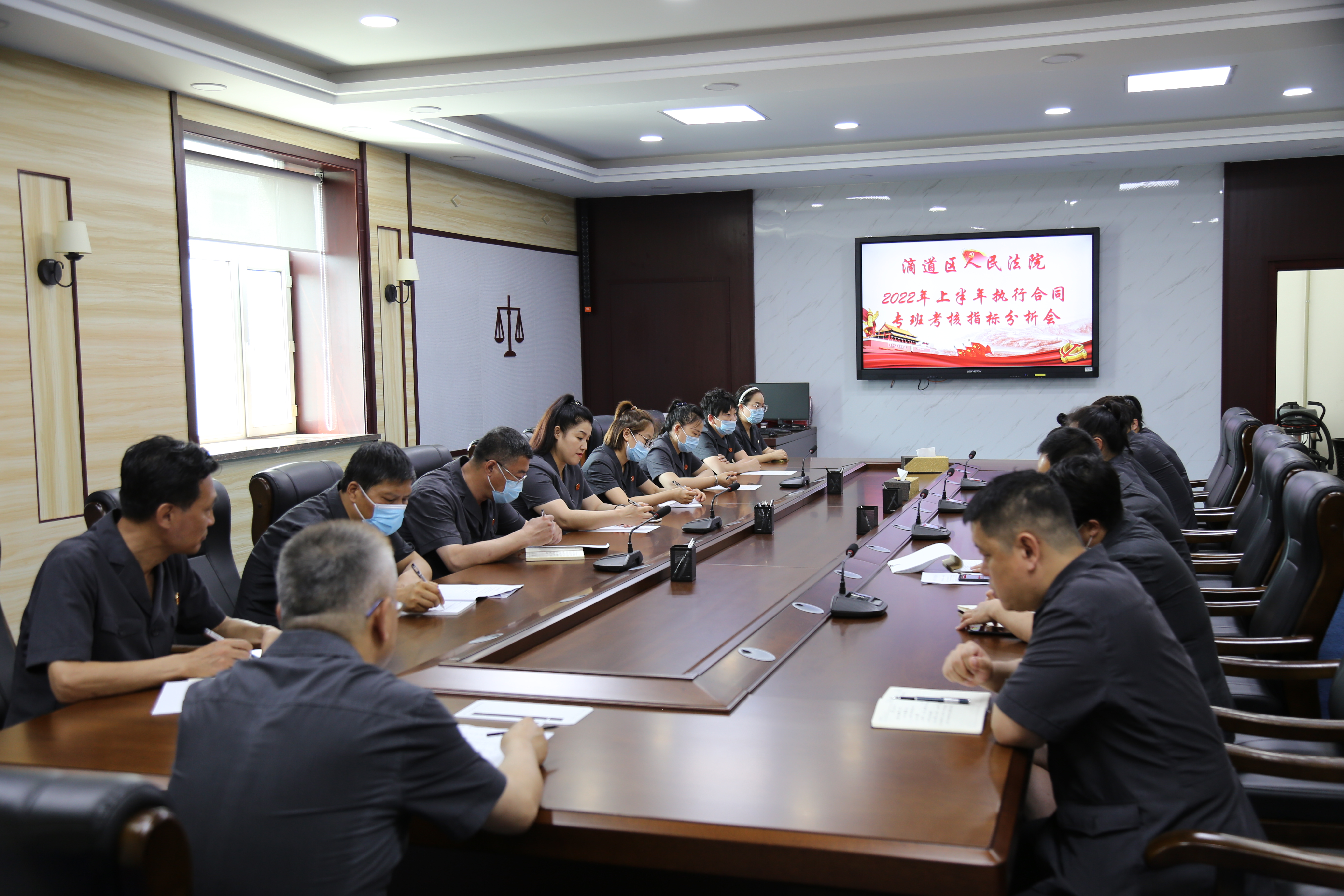 2022年7月5日上午,滴道法院召开《2022上半年执行合同专班指标分析会》,会议由党组书记、院长苑司新主持,专班成员和业务庭书记员参加会议。