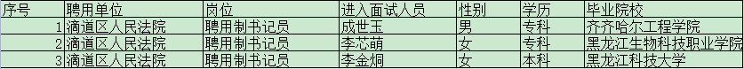 公示|滴道区人民法院2022年度聘用制书记员招聘考试进入面试人员公示