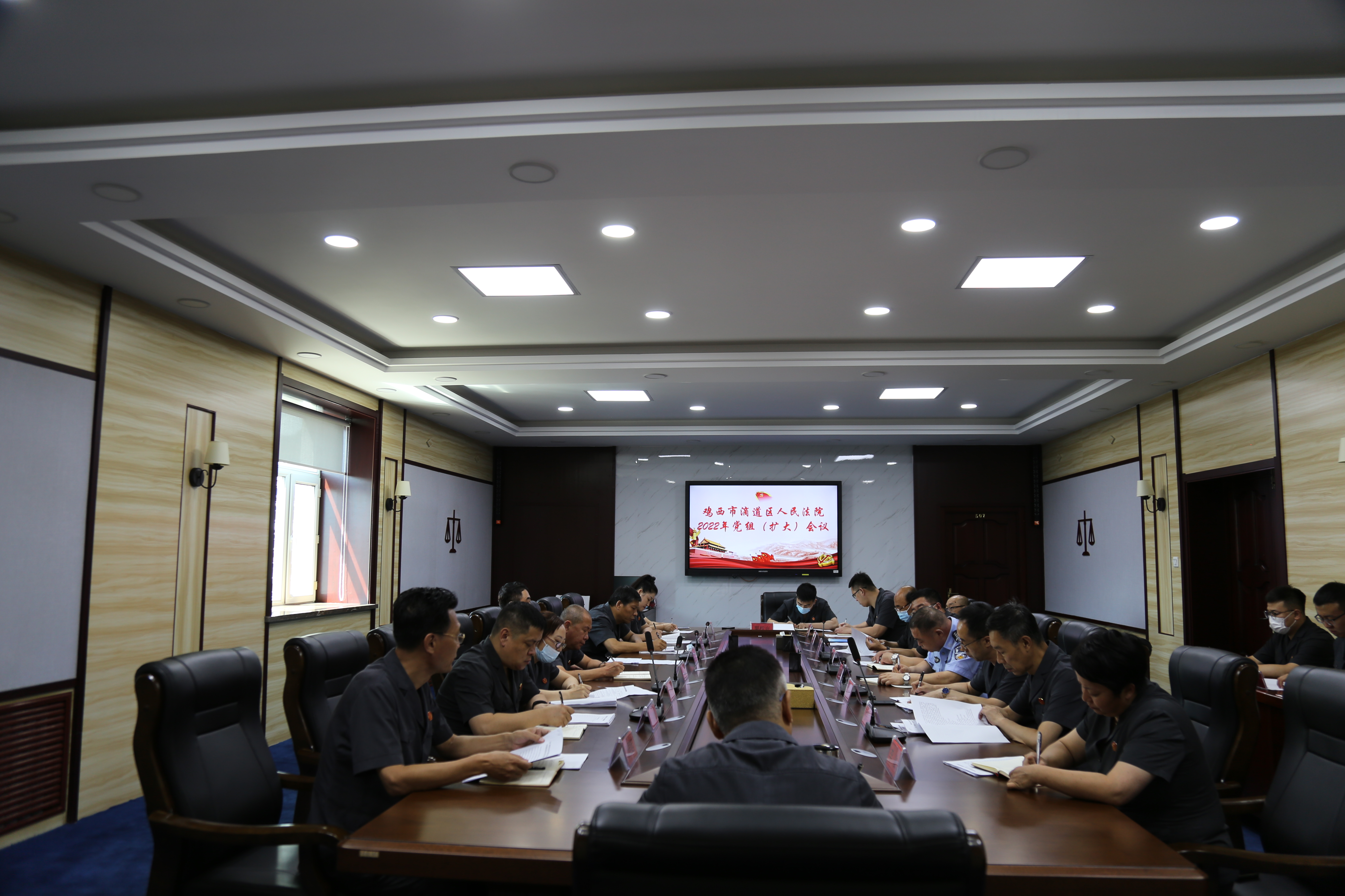 2022年8月9日,滴道区法院召开党组(扩大)会议,党组成员、各部门负责人和全体员额法官及法官助理参加会议。党组书记苑司新领学了《习近平谈治国理政》第四卷;会议传达了省法院党组书记、院长石时态同志到鸡西中院调研工作座谈时的讲话,传达了鸡西中院党组书记、院长孙勇同志在全市法院贯彻石时态院长讲话精神会议上的讲话。